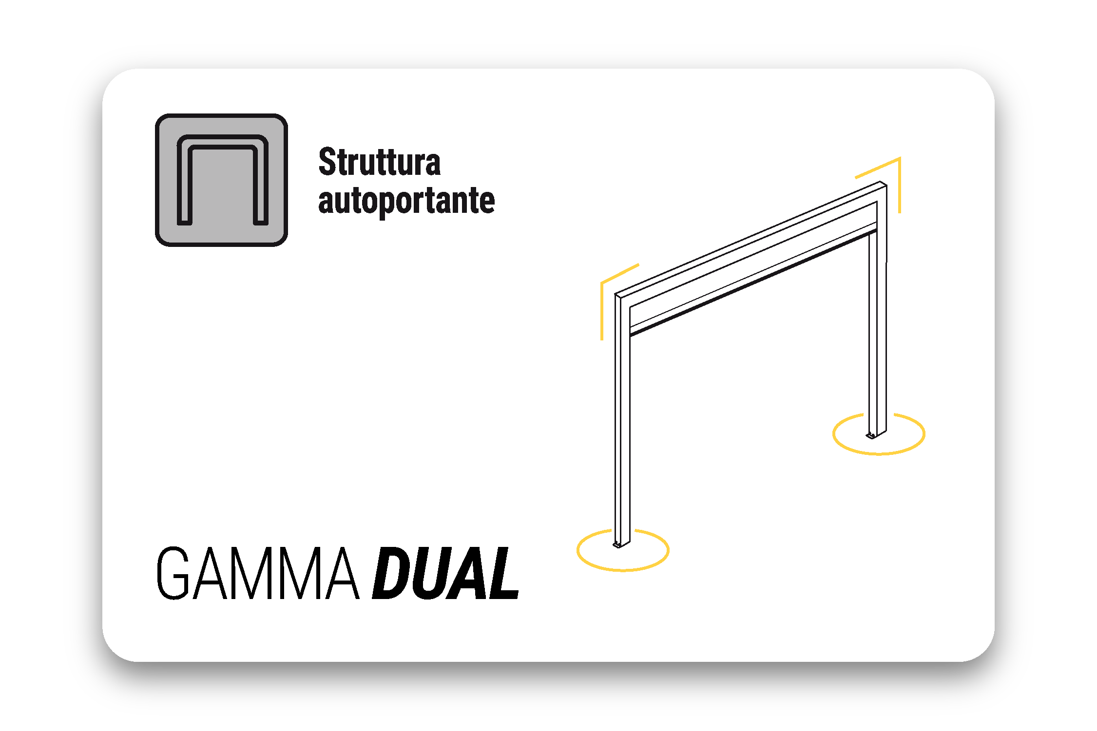 Le porte a impacchettamento con doppio telo DUAL-AIR® sono una vera e propria parete. La struttura è composta da montanti contenenti l’impianto elettrico ed una traversa nella quale trovano collocazione i dispositivi di avvolgimento delle cinghie.